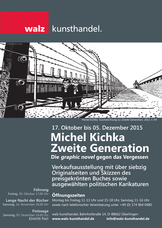 am 17. Oktober startet unsere Herbstausstellung mit Zeichnungen und Originalseiten aus Michel Kichkas preisgekrönter Graphic Novel "Zweite Generation". Wir laden Sie ganz herzlich zur Vernissage im Rahmen der 5. Jüdischen Kulturtage am 17. Oktober um 16.00 Uhr ein.