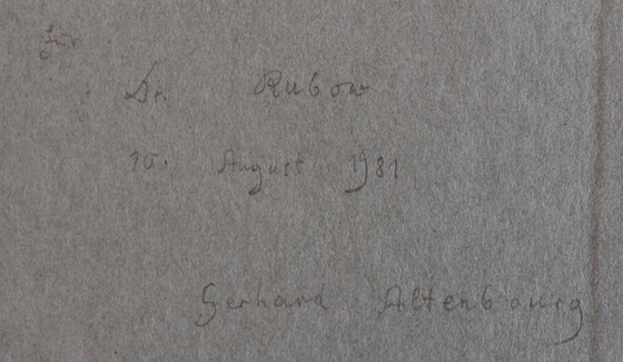 Werkverzeichnis 1947-1969 Erstellt von Gerhard Altenbourg, unter Mitarbeit von Annegret Janda. Die gebundene Vorzugsausgabe des lange Zeit gültigen ersten Werkverzeichnisses des Künstlers. Auf der Einbandinnenseite sowie dem Vorsatzblatt mit einer farbigen originalen Handzeichnung in Kohle und Farbstift von Altenbourg im Format 16,8 x 20,5 cm. Motivisch präsentiert die zarte, vollgültige Zeichung in schwarz, karmin und ocker zwei diskutierende Männergestalten. Die schöne Arbeit ist vom Künstler signiert, datiert 10. August 1981 und mit einer Widmung versehen. 1970 195 S. mit zahlreichen Farb- und Schwarz-Weiß-Tafeln sowie Abbildungen im Text, Orig.-Kart., Quer Oktav.; (Katalog Nr. 41 im Verlag der Galerie Brusberg) Reich und farbig bebildertes erstes Werkverzeichnis des 1926 in Thüringen geborenen phantastischen Malers. Dazu autobiographische Notizen, Texte, Lyrik und Prosa Altenbourgs sowie Texte über ihn von D. Brusberg, E. Kästner, E. Roters, A. Janda, L. Last und K. Szekessy. Der Abbildungsteil ist geordnet in: Köpfe, 1949-68; Landschaften, 1947-67; Szenen, 1949-69; Miniaturen, 1968/69; Werkverzeichnis 1947-69. Hannover, Verlag der Galerie Brusberg, 1970