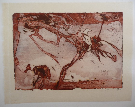 Ebenfalls bei Walz Kunsthandel erhältlich das Exemplar mit der Farbradierung in der Farbstellung dunkelbraun und erdfarben sowie das vom Künstler auf dem Vorsatzblatt handsignierte Exemplar dieses zum Preis von 128,-EUR.